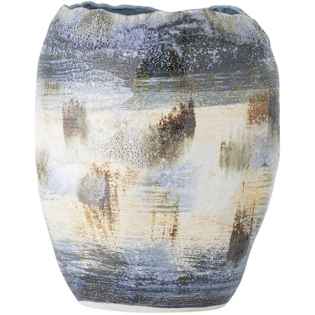 Odkryj wazon NIENNA od Bloomingville, który zachwyca swoją unikalną formą i estetyką. Wykonany z trwałej kamionki, ten produkt wyróżnia się nieregularnym kształtem, nadając wnętrzu wyjątkowy, autentyczny charakter. Dzieło designu, które przyciąga uwagę dzięki pięknej grze kolorów w różnych odcieniach niebieskiego, bieli i brązu.