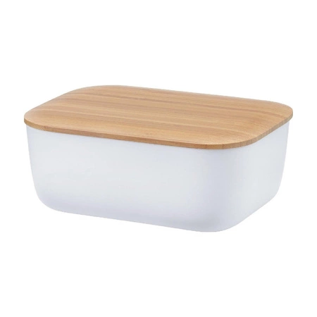Maselniczka BOX-IT przeznaczona jest do przechowywania standardowy rozmiarów kostek masła lub margaryny. Produkt można myć w zmywarce (bez pokrywy). Pojemnik wykonany w eleganckiej formie można wykorzystać również jako zastawę na stół. W kolekcji połączono materiały: melamina i drewno bambusowe otrzymując prosty i bardzo elegancki design. Za projektem stoi Jehs&Laub, którzy w swoich projektach inspirowali się ciepłem domowego ogniska.